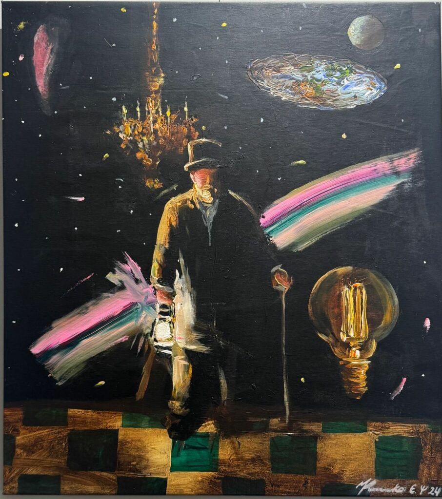 Die Ausstellung Architect of the Galaxy widmet sich dem Menschen als aktivem Gestalter seiner inneren und äußeren Welt. In den Gemälden von Evgen Klimenko wird die menschliche Figur zur zentralen Achse eines imaginären Kosmos — zwischen Chaos und Ordnung, Kontrolle und Freiheit, Rationalität und Magie.