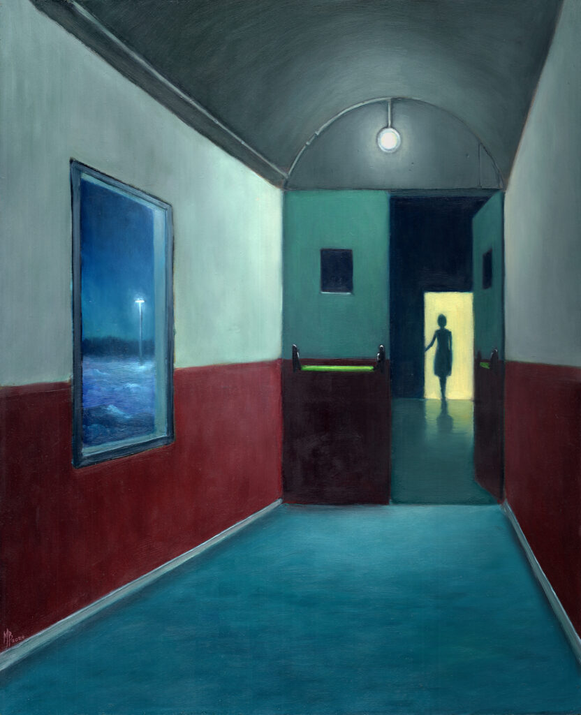 Die Werke des Pariser Künstlers Michaël Brack versetzen den Betrachter in eine Welt gedämpfter Innenräume und geheimnisvoller architektonischer Räume, in denen die Realität Züge eines Traums annimmt. Seine Gemälde sind wie Theaterszenen, in denen der Raum selbst zur Hauptfigur wird, während menschliche Gestalten als Schatten, Geister oder ferne Silhouetten erscheinen.